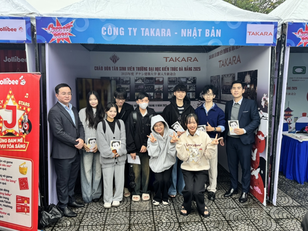 2025年11月23日、ダナン建築大学にて新入生歓迎会及び創立19周年記念式典が開催されました。弊社はダイヤモンドスポンサーとして企業紹介ブースを出店いたしました。約200人の学生がブースに訪れ、各企業会社紹介パンフレットなどを手渡し学生に紹介いたしました。弊社に少しでも興味を持っていただけると幸いです。