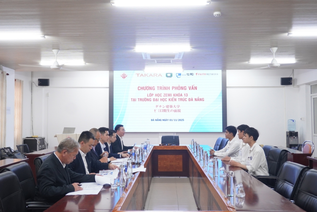 11月1日、ダナン建築大学日本ゼミ第13期生を対象とした面接を実施いたしました。面接開始前には、日本企業の紹介ビデオを放映いたしました。各社の事業内容や特徴を事前に理解してもらうことで、面接に臨む意識を高めることを目的として実施いたしました。